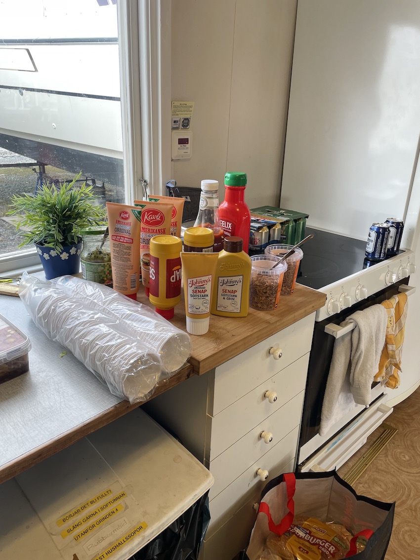 I klubbstugan förbereddes lunchen och utanför stod grillarna och väntade på eld.